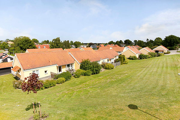 De gule rækkehuse er opført i mindre klynger, alle i ét plan, og har hver deres private ”kvarter” på Solbakken, men er samtidig forbundet med resten af bebyggelsen. Hvert rækkehus har en ugeneret baghave, der vender ud mod grønne fællesarealer. Til rækkehusene hører køle-/fryseskab, komfur og emhætte, og der er forberedt til installation af egen vaskemaskine. Der findes gode parkeringsmuligheder lige ved døren.