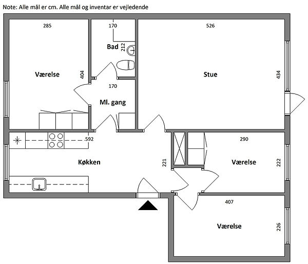 4 vær. boliger under 90 m2 kan udlejes som 3 vær. boliger.